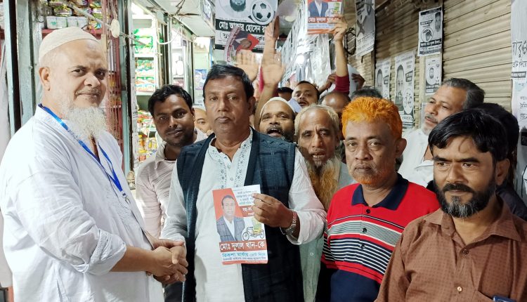এ সময় সহ সভাপতি প্রার্থী মোঃ দুলাল খানের সঙ্গে বাজারের দোকান মালিক ও ব্যবসায়ীরা তার সাথে লিফলেট বিতরণ ও গণসংযোগে অংশগ্রহণ করেন