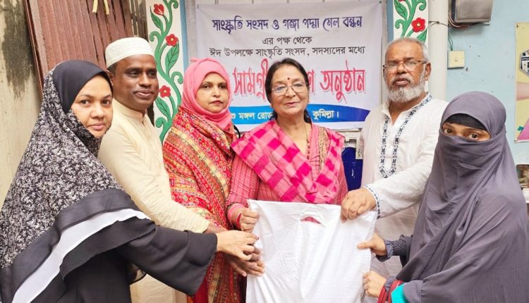 সংস্কৃতি সংসদ ও গঙ্গা পদ্মা মেলবন্ধনের পক্ষ থেকে ঈদুল আযহা উপলক্ষে সংস্কৃতি সংসদ সদস্যদের মধ্যে ঈদ সামগ্রী বিতরণ করা হয়েছে।