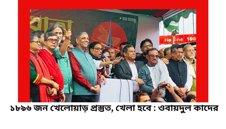 ওবায়দুল কাদের বলেন, ৭০ শতাংশ লোক দাঁড়িয়ে আছে, ১৮৯৬ জন খেলোয়াড় প্রস্তুত। ৭ জানুয়ারি তারা খেলবে নাশকতা ও দুর্নীতির বিরুদ্ধে। সেদিন খেলা হবে, ফাইনাল খেলা হবে।