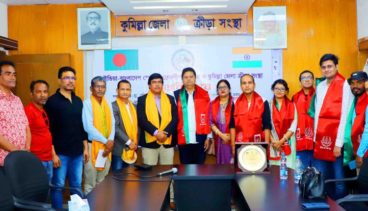 ইন্ডিয়া-বাংলাদেশ স্পোটর্স ফ্রেন্ডশীপ ফোরাম ও কুমিল্লা জেলা ক্রীড়া সংস্থার উদ্যোগে মতবিনিময় সভা কুমিল্লা জেলা ক্রীড়া সংস্থায় অনুষ্ঠিত হয়েছে। মতবিনিময় সভায় ভারত-বাংলাদেশ দুই দেশের ক্রীড়া উন্নয়নে এবং খেলাধুলার প্রসারে কাজ করার সিদ্ধান্ত নেওয়া হয়। শনিবার ( ১৭ ফেব্রুয়ারি ) বেলা ১টায় এ মতবিনিময় সভায় ভারতের ত্রিপুরা রাজ্যের আগরতলা প্রতিনিধি দল কুমিল্লা জেলা ক্রীড়া সংস্থার কর্মকর্তাদের সাথে দুই দেশের খেলাধুলার প্রসারে বিস্তারি আলোচনা করেন।