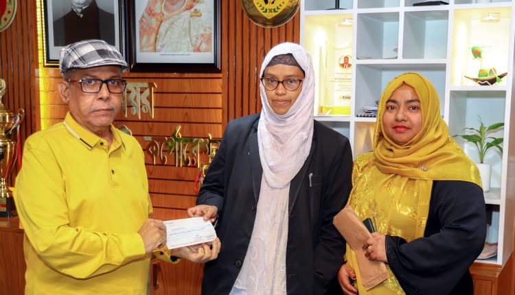 প্রয়াত সাংবাদিক জালাল উদ্দিন এর সহধর্মিনীর হাতে অনুদানের চেক তুলে দেন ; মেয়র রিফাত।